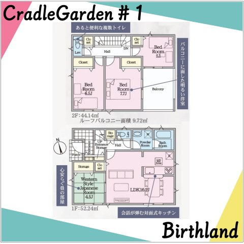 - 陽当り良好 / 建設住宅性能評価書付 / 新婚さん向け / ファミリー向け / 室内洗濯機置場 / フローリング / ルーフバルコニー / プロパンガス / 公営水道 / 公共下水 / 電気有 / 駐車3台可 / ガスコンロ / コンロ2口以上 / システムキッチン / コンロ3口 / カウンターキッチン / バス・トイレ別 / 追焚機能浴室 / 浴室乾燥機 / 温水洗浄便座 / 洗髪洗面化粧台 / トイレ2ヶ所 / 床下収納 / 収納豊富 / TVモニタ付インターホン / 複層ガラス